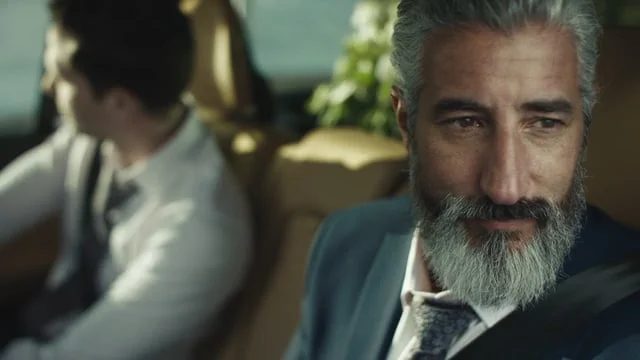 Most of the chatter is about the inspired casting of that older hipster graybeard sitting in the back. For starters, very few American dads look like him, with his abundant white hair, sizable schnoz, elegant suit, and artisanal beard. He’s a younger cross between Commander Whitehead and the Most Interesting Man in the World, seeming to scream “Hot Yoga Dad.”